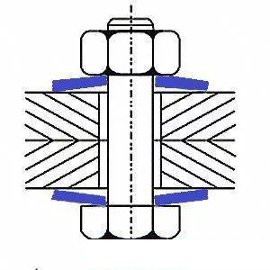 這種墊圈的一面是大斜齒面,在墊圈的另一面有放射狀鋸齒。NORD-LOCK墊圈是大齒面相對(duì),成對(duì)安裝的。當(dāng)擰緊螺栓或螺母時(shí),放射狀鋸齒緊緊咬住接觸面,使NORD-LOCK墊圈分別與螺母和連接件接觸面相對(duì)固定,只允許大斜齒面間的相對(duì)移動(dòng)。螺栓或螺母的任何松動(dòng)趨勢都被大鋸齒的這種楔入效果所阻止。兩片NORD-LOCK墊圈之間的抬升距離大于因螺紋滑動(dòng)引起的螺栓或螺母抬升的距離。
