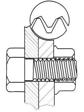 在施必牢螺母內(nèi)螺紋的牙底處有一個(gè)30度的楔形斜面,當(dāng)螺栓螺母相互擰緊時(shí),螺栓的牙尖就緊緊地頂在施必牢螺紋的楔形斜面上,從而產(chǎn)生了很大的鎖緊力。由于牙形的角度改變,使施加在螺紋間接觸所產(chǎn)生的方向力與螺栓軸線成60度角,而不是像普通螺紋那樣的30度角。這就使得施必牢螺紋方向壓力遠(yuǎn)遠(yuǎn)大于扣緊壓力,因此,所產(chǎn)生的防松摩擦力也就必然大大增加了。